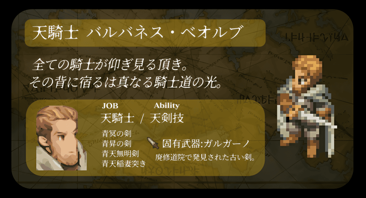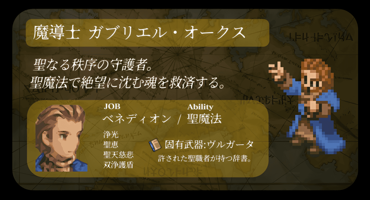 このMODはFinal Fantasy Tactics(ファイナルファンタジータクティクス)のファン作成コンテンツです。著作権に関して は「SQUARE ENIX Co.,Ltd.」 に帰属します。非営利目的のみで、オリジナル作品の改変を目的としています。【配布内容・利用条件】 Final Fantasy Tacticsのパッチ形式(差分データ)のみを提供 。PS1 ROMやアセットファイルは一切同梱・配布していません。ユーザーが合法的に入手したROMに適用してください。【免責事項】 MOD適用によるゲームデータの損失・動作不良等について一切の責任を負いかねます。